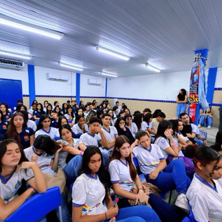Atividade reuniu cerca de 150 alunos e contou com roda de conversa sobre respeito, patriarcado, feminicídio e enfrentamento à violência contra a mulher